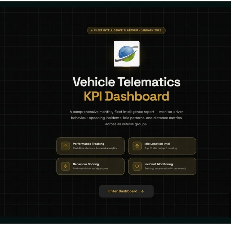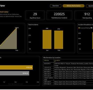 I partnered with PowerTrack Africa, a fleet management and telematics solutions provider operating in DR Congo, to design and deliver a Power BI Vehicle Telematics KPI Dashboard tailored to fleet intelligence and driver performance monitoring. PowerTrack’s business revolves around GPS tracking, fleet visibility, driver behaviour management, and analytics-driven decision-making, so the reporting solution had to do more than display raw telematics data it needed to convert operational movement into actionable business insight